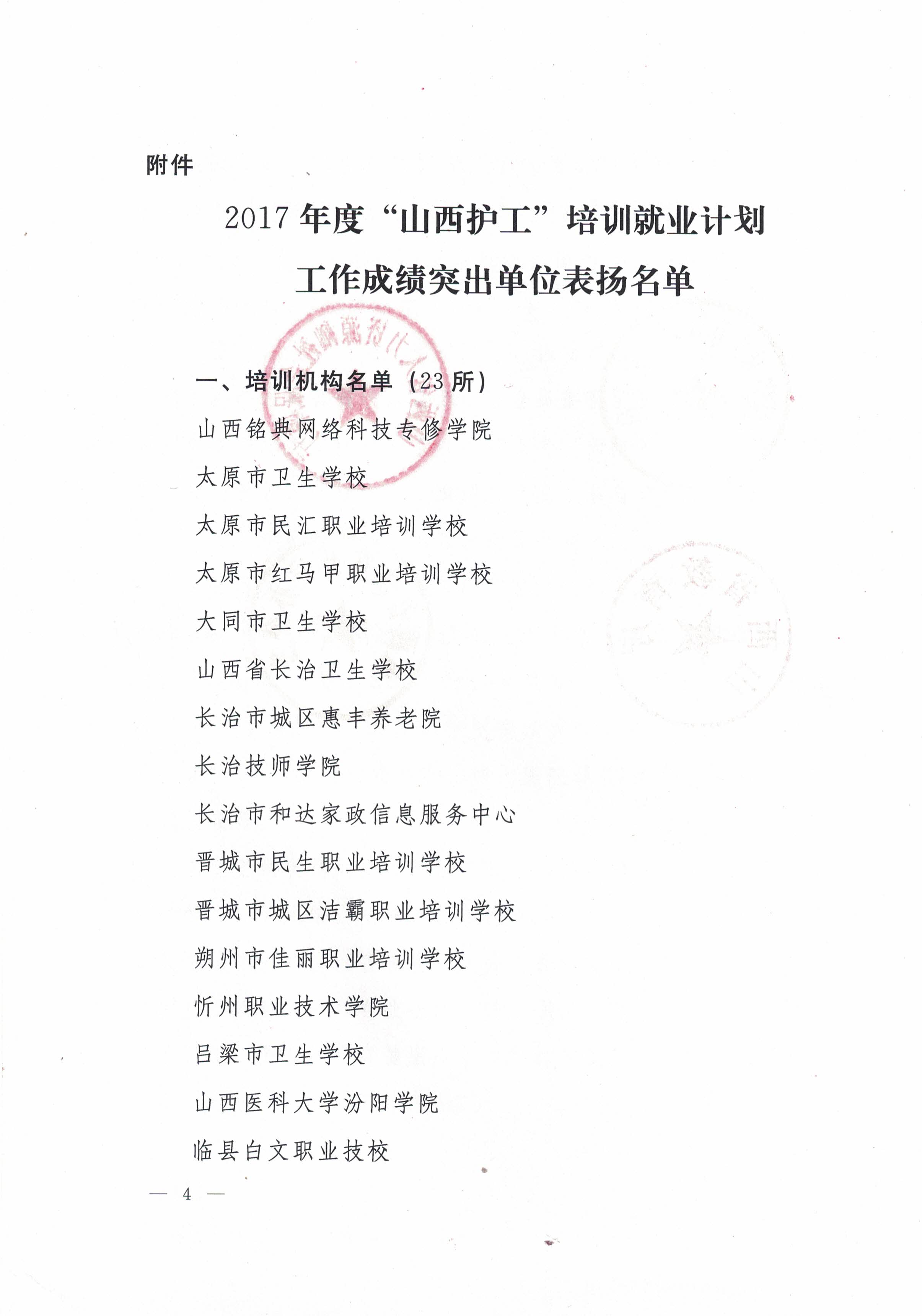 晉城市城區(qū)潔霸職業(yè)培訓(xùn)學(xué)校在2017年的“山西護(hù)工”培訓(xùn)計(jì)劃中成績斐然,于2018年3月26日獲得了2017年度“山西護(hù)工”培訓(xùn)就業(yè)計(jì)劃工作成績突出單位的表彰。