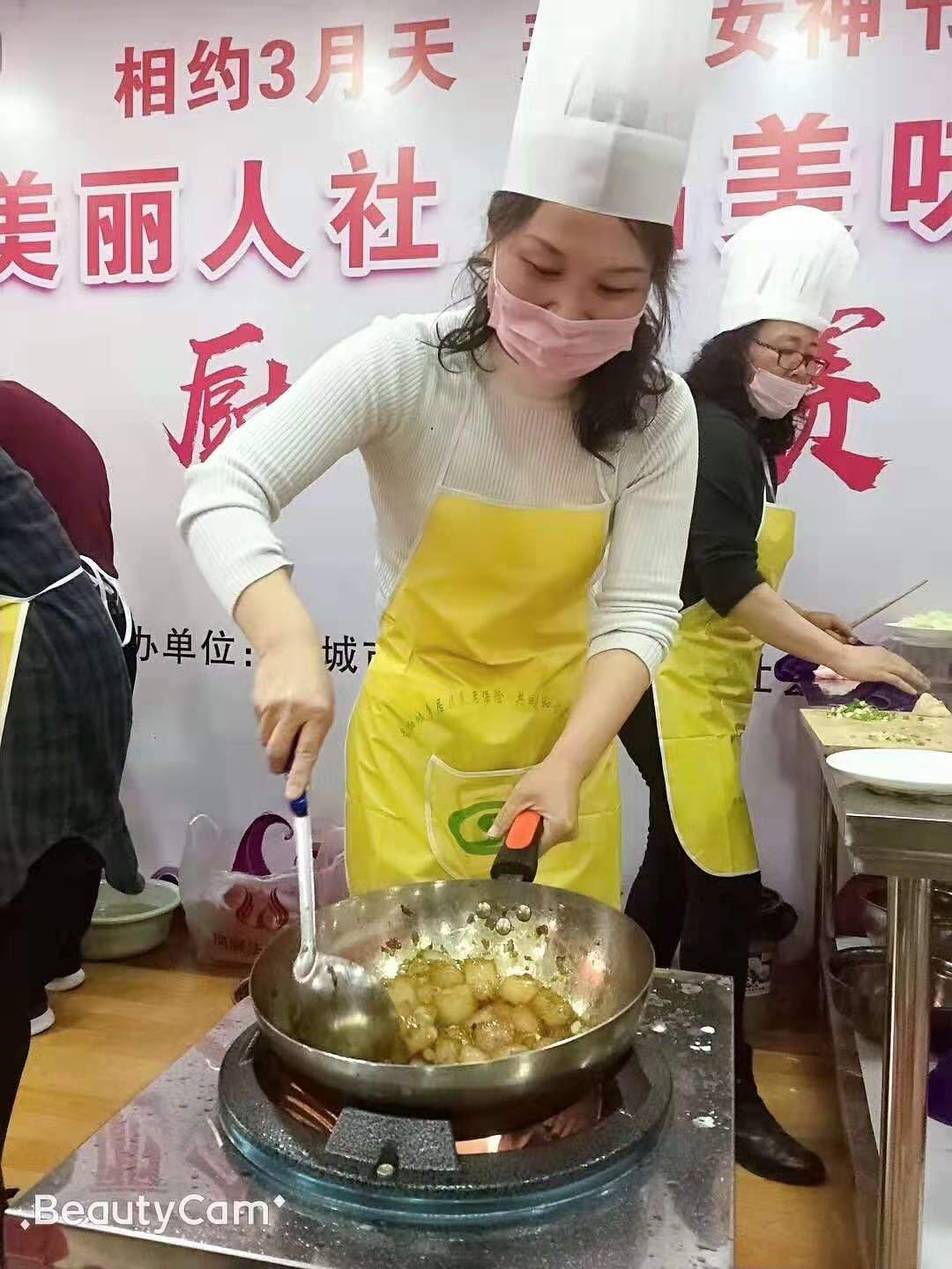 各組女神在在精心展示自己的廚藝,為本小組爭(zhēng)光。