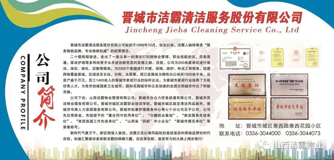 20年砥礪奮進,從一個租賃兩間辦公室名不見經(jīng)傳的小公司,成長為擁有擁有辦公場所1500余平米,總資產(chǎn)逾千萬元,員工1500余人的晉城市家政行業(yè)的標(biāo)桿企業(yè),潔霸完成了精彩跨越,“做清潔行業(yè)的霸主”的發(fā)展定位從未改變。