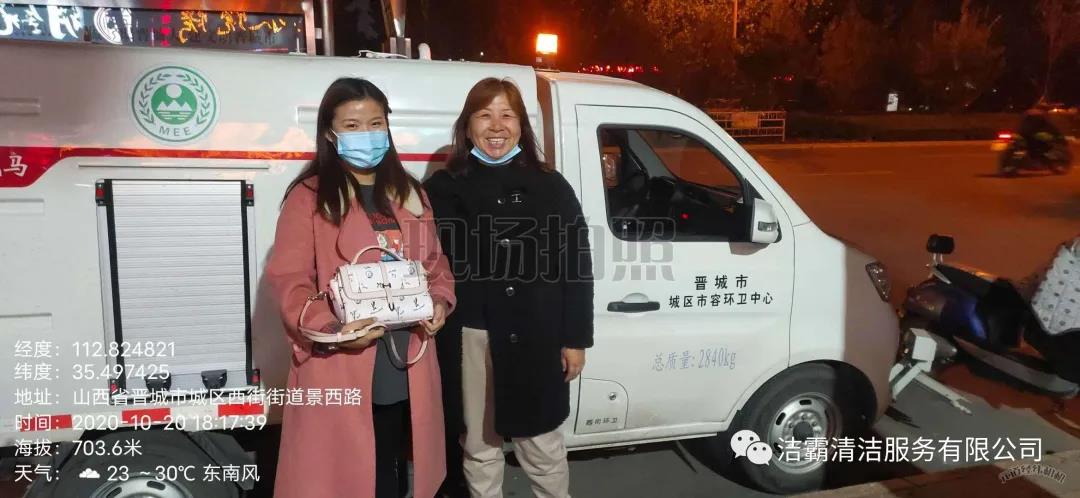 10月20日下午3點(diǎn)左右,晉城市潔霸清潔服務(wù)股份有限公司保潔部環(huán)衛(wèi)經(jīng)理李通和工人在城區(qū)南街街道景西路段進(jìn)行街道清洗作業(yè)時(shí),忽然看見晉城農(nóng)商銀行門前的綠化帶里有一個(gè)女士挎包,忙叫環(huán)衛(wèi)工人郭志云把挎包撿了起來(lái)。當(dāng)時(shí)就考慮到失主丟失挎包以后一定很著急,在同事的共同見證下他們打開挎包,經(jīng)過(guò)查看,發(fā)現(xiàn)挎包內(nèi)有一張王女士的身份證、社?般y行卡數(shù)張,還有結(jié)婚證、鑰匙、耳機(jī)、富士康工牌等物品。憑借富士康工牌上的工號(hào),他們給富士康打電話聯(lián)系到了失主,后由環(huán)衛(wèi)主管秦彩鳳將挎包交到失主手中。收到失而復(fù)得的挎包,王女士又驚又喜,感激萬(wàn)分。