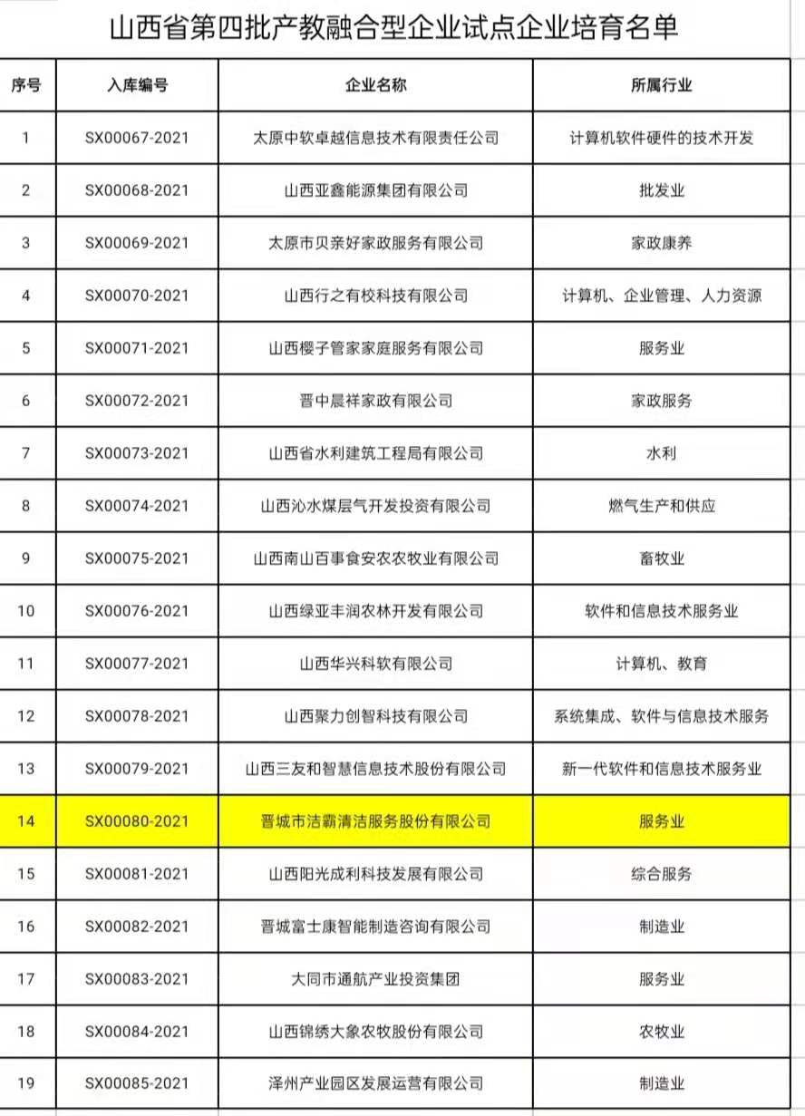 按照遴選培育原則和程序,通過企業(yè)基礎資料初審、“互聯網+現場”答辯、專家組評審等工作,遴選確定晉城市潔霸清潔服務股份有限公司納入省級建設培育庫。