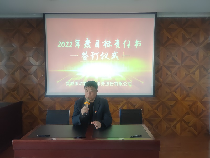 為落實公司2022年工作會議精神,進一步壓實責(zé)任,確保年度工作目標的順利完成, 3月1日下午,晉城市潔霸清潔服務(wù)股份有限公司在活動中心組織召開2022年度目標責(zé)任書簽訂會議。公司黨支部書記、總經(jīng)理程晉軍,副總經(jīng)理張永智、史志霞,經(jīng)理助理,各子公司、分公司、部門經(jīng)理及項目負責(zé)人、主管等參加會議。