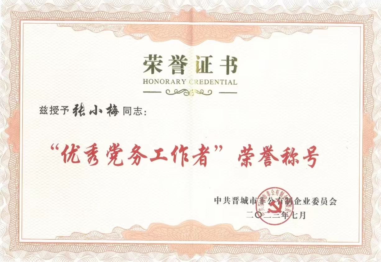 此次被市非公企業(yè)黨委授予“先進基層黨組織”稱號,是公司黨支部連續(xù)第五年獲得此項殊榮。近年來,公司黨支部堅持黨建引領(lǐng),抓陣地,建機制,壯隊伍,提素質(zhì),設立黨員示范崗、示范區(qū),廣泛開展“戴黨徽、亮身份、樹形象”活動,持續(xù)推進黨建與生產(chǎn)經(jīng)營深度融合,真正賦能企業(yè)高質(zhì)量發(fā)展。公司先后榮膺省、市級授予的“守合同重信用單位”“巾幗創(chuàng)業(yè)基地”“家政服務先進單位”“商貿(mào)流通工作先進單位”“山西省‘四新’中小企業(yè)”“晉城市模范單位”等榮譽稱號。等殊榮,公司黨支部分別獲得“‘雙強六好’省級示范黨組織”“‘雙強六好’市級示范黨組織”晉城市基層黨組織規(guī)范化建設示范點”等榮譽稱號。 |
