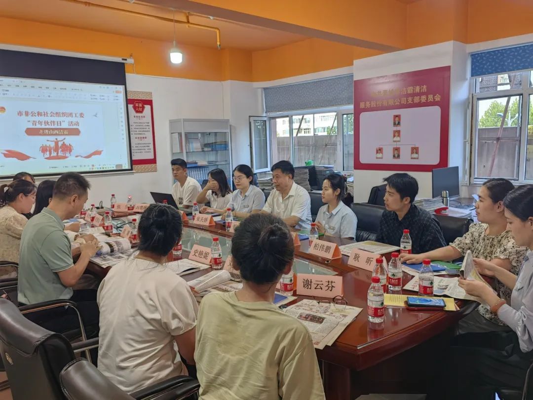 在城區(qū)零工市場(chǎng),負(fù)責(zé)人梁志恒向?qū)O晉波一行對(duì)零工市場(chǎng)作了簡(jiǎn)單介紹。參加活動(dòng)的團(tuán)員青年通過走訪觀看和傾聽講解,對(duì)零工市場(chǎng)有了一定的了解,并表示以后要加強(qiáng)合作,為企業(yè)招工薦才。 在潔霸公司,公司黨支部書記、總經(jīng)理程晉軍簡(jiǎn)單介紹了公司的發(fā)展歷程、主營業(yè)務(wù),孫晉波一行一邊實(shí)地參觀,一邊聽取介紹,詳細(xì)了解了公司黨建引領(lǐng)的發(fā)展情況及黨建帶團(tuán)建工作。 在“關(guān)愛新工 從‘新’做起”主題座談會(huì)上,公司總經(jīng)理程晉軍致歡迎詞,向非公團(tuán)工委青年小伙伴們的到來表示熱烈歡迎,并就公司一直以來全力支持公司團(tuán)支部的工作,關(guān)心青年的發(fā)展,全方位為青年職工搭建成長(zhǎng)平臺(tái)的情況作了簡(jiǎn)略介紹。會(huì)上,大家暢所欲言,結(jié)合自身實(shí)際紛紛發(fā)表各自的見解和觀點(diǎn)并表達(dá)了參觀潔霸后的感受。 期間,參會(huì)團(tuán)員青年還集體學(xué)習(xí)了黨的二十屆三中全會(huì)精神、“兩企三新”和《團(tuán)章》部分內(nèi)容。 據(jù)悉,“青年伙伴日”活動(dòng)是團(tuán)市委、市非公和社會(huì)組織團(tuán)工委推出的一項(xiàng)品牌活動(dòng),旨在通過活動(dòng)開展,貫徹學(xué)習(xí)二十屆三中全會(huì)關(guān)于推進(jìn)青年工作的精神,加強(qiáng)對(duì)“兩企三新”青年的關(guān)心關(guān)愛,為全市非公青年提供學(xué)習(xí)交流的平臺(tái),進(jìn)一步發(fā)揮團(tuán)組織的凝心聚力作用。 |