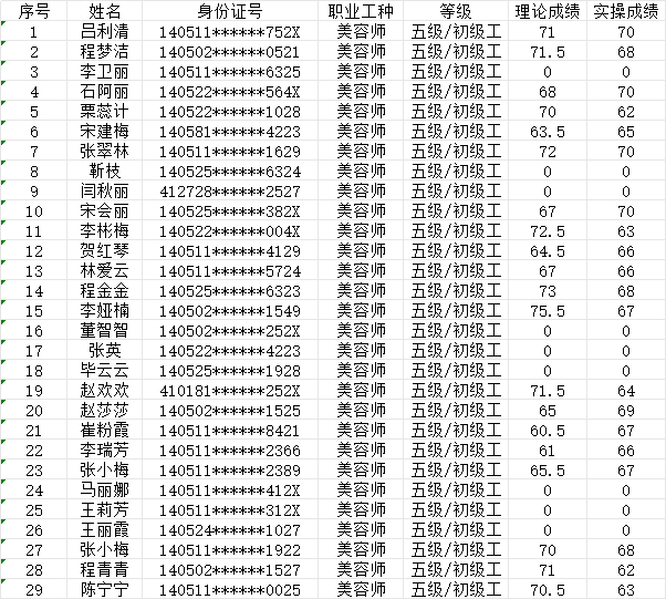 2024年9月21日第9批美容師初級認(rèn)定人員成績公示
